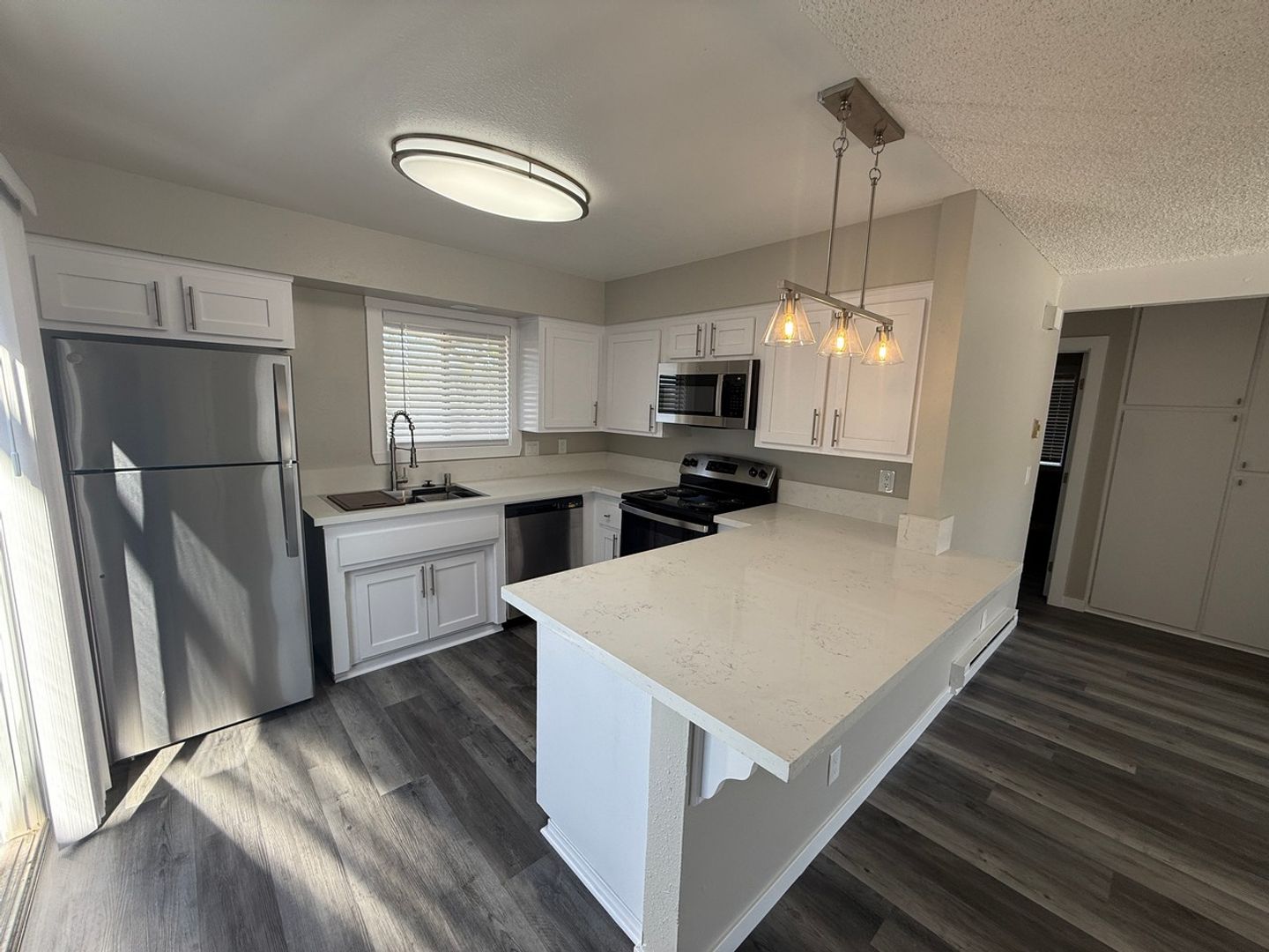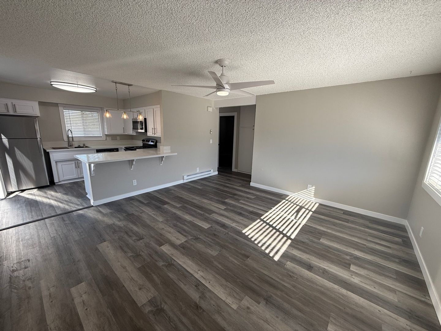 This completely remodeled apartment offers two spacious bedrooms and a full bathroom. The chef's kitchen, complete with ample cabinetry and stainless steel appliances, and an island. The vinyl wood-like flooring throughout the apartment adds a touch of sophistication and is easy to maintain. Ceiling fans in each room ensure a comfortable atmosphere all year round. Step outside to your huge private patio, the perfect spot for outdoor dining or simply enjoying the California sunshine. Best of all, you're just minutes away from the beach. Experience the best of coastal living in this stunning Grover Beach apartment. Low move in costs, pet friendly + $250 gift card